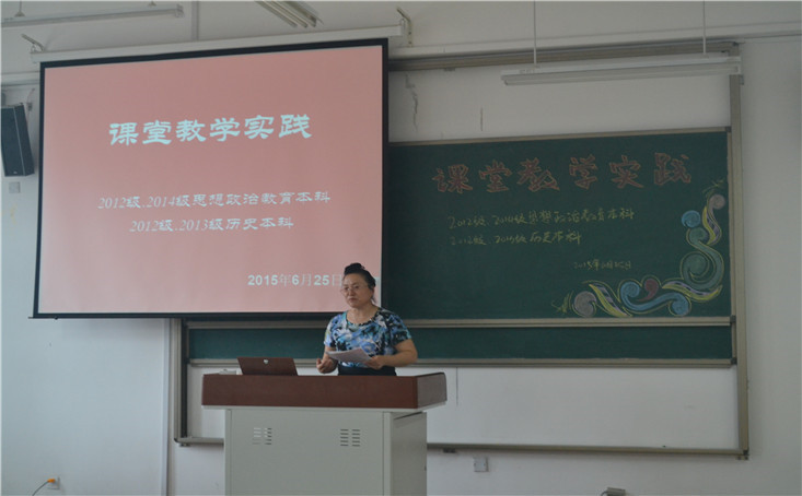 2015年6月25日下午,我院在二号教学楼A505开展了“以专业对接社会发展热点问题”的课堂实践教学活动。本次课堂实践教学活动由我院陈海燕教授组织进行,2012、2014级思想政治教育本科班及2012、2013级历史本科班的同学参加。