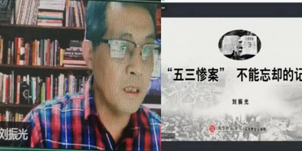 为认真贯彻《山东省教育厅关于进一步巩固和拓展“同城大课堂”活动的通知》要求,纪念济南“五三惨案”94周年,教育引导青年学子铭记历史、勿忘国耻,激发当代青年的爱国热情,增强广大青年的凝聚力。马克思主义学院“中国近现代史纲要”教研室联合“原理”课教研室、“概论”课教研室,共同策划进行了“同城大课堂·五三惨案”专题教学活动。马克思主义学院刘振光教授以“五三惨案 不能忘却的记忆”为题,做了一场精彩的专家示范课。全校大学一年级4000余名学生“同上一堂思政大课”,共同接受了一场深刻的历史教育和思想洗礼,在师生中产生了强烈而积极的反响。