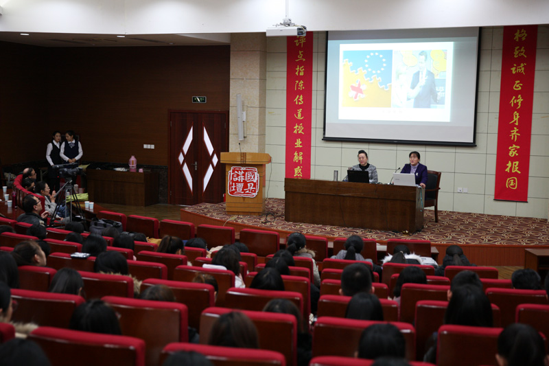 面对国际形势的新变化,12月15日下午,我校“国是讲坛”在学术报告厅迎来第十讲——“中国特色大国外交新布局”。讲座由国家二级教授、山东省高校教学名师陈海燕博士主讲,马克思主义学院教授李伟博士辅讲,由我校宣传部部长宋新刚主持。全体思想政治教育专业老师和学生,以及全校学生党员和入党积极分子近400人共同聆听讲座。