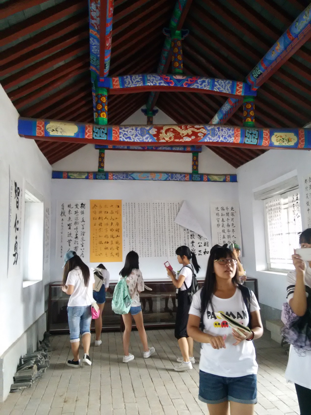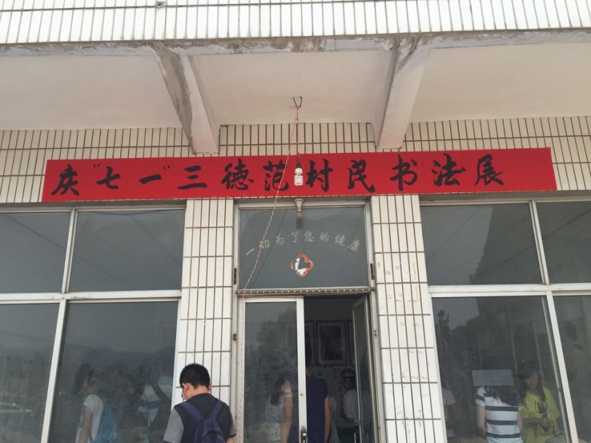 参观完玄帝阁,我们来到了庆“七一”村民书法展厅。展厅里显示的毛笔字有的笔力劲挺、大气磅礴;有的龙飞凤舞、笔酣墨凤。还有不少年龄比我们还小的孩子的作品也都十分出色,让在场的同学们大饱眼福。这些字,字字表达了村民对党的支持和拥护,对幸福生活的珍惜,体现出三德范村团结向上的精神。