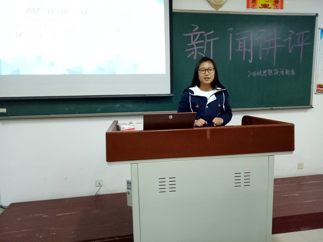2017年11月19日,为了了解近期发生的热点新闻,我院2016级思想政治教育本科班全体同学在2号教学楼A308教室进行了新闻讲评活动。