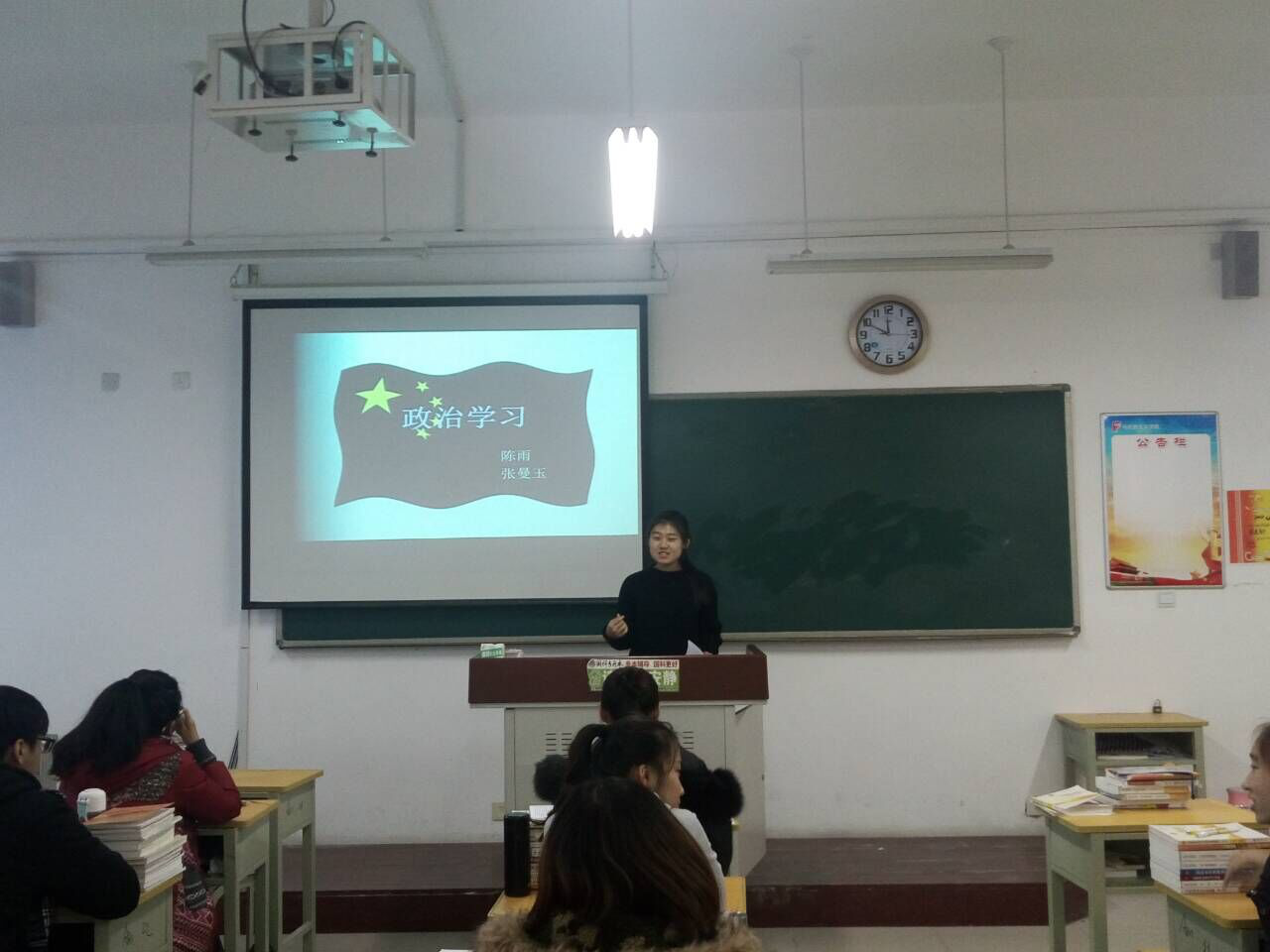 2016年12月8日,2014级思想政治教育本科班在二教A311教室进行了以“纪念《发展权利宣言》”为主题的政治学习。本次政治学习由陈雨、张曼玉主讲,2014级思想政治教育本科班全体同学参加。