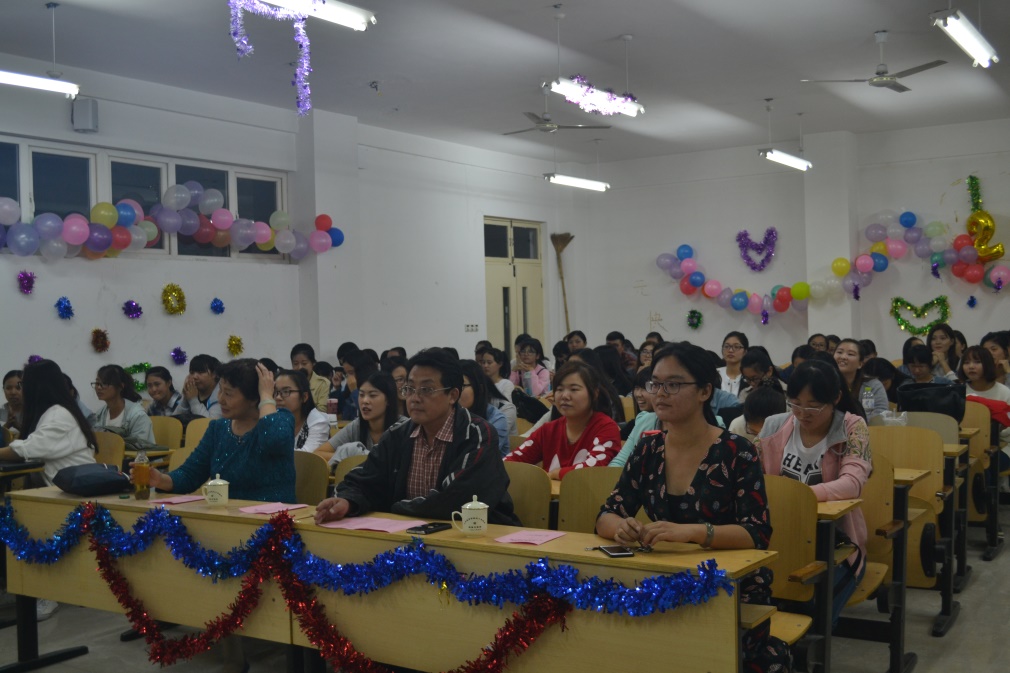 晚上6点半,晚会在动感十足的开场舞中拉开帷幕,随后主持人宣布晚会开始,并邀请了王书记和刘院长致辞。书记主要就即将到来的国庆佳节向同学们表示了节日的祝福,并表达了对2016级新生的欢迎和期待;院长则就本次迎新晚会讲述了文体活动与同学们的专业学习及个人发展的关系,并就此表达了对同学们要不断提升自己的期望。之后,晚会正式开始,在随后的节目中,精彩连连、高潮不断;深情舒缓的歌曲、可爱搞笑的舞蹈、幽默风趣的相声、小品;一个又一个的精彩节目将晚会不断推上高潮,赢得了同学们不断地掌声及欢呼。在游戏环节中,观众们也都参与到其中,为晚会又添亮点。最后,晚会在由16级全体同学共同演唱的一首《隐形的翅膀》中圆满结束。