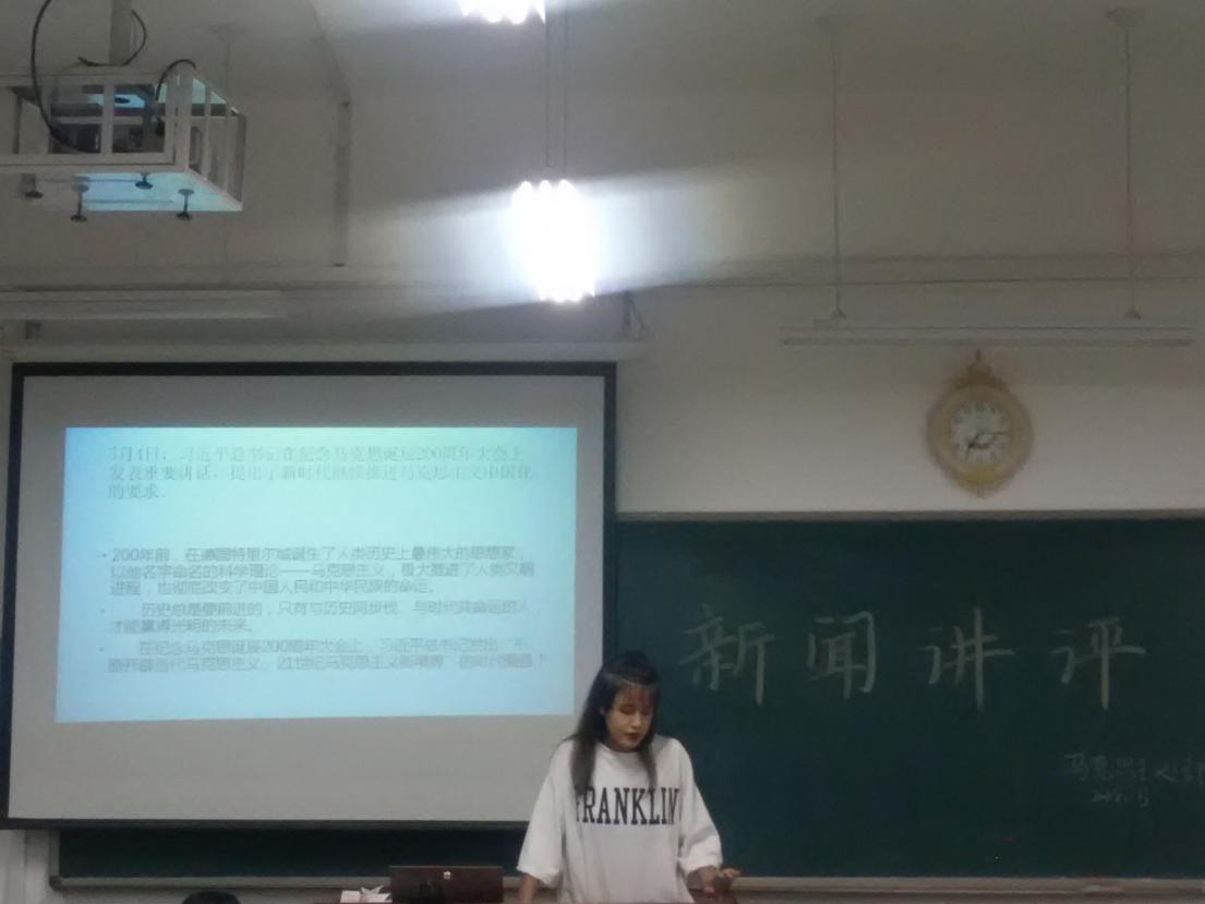 这次新闻讲评本着实事求是的原则,对国际国内的新闻热点展开讲述。活动开始,由各组代表上台讲评新闻。在国内新闻中提到习近平总书记在纪念马克思诞辰200周年大会上发表重要讲话,提出了新时代继续推进马克思主义中国化的要求;中国新一届政府成立后国务院总理首次出访等。国际新闻方面提到了5月5日中美双方通电,就朝鲜半岛问题交换了意见……