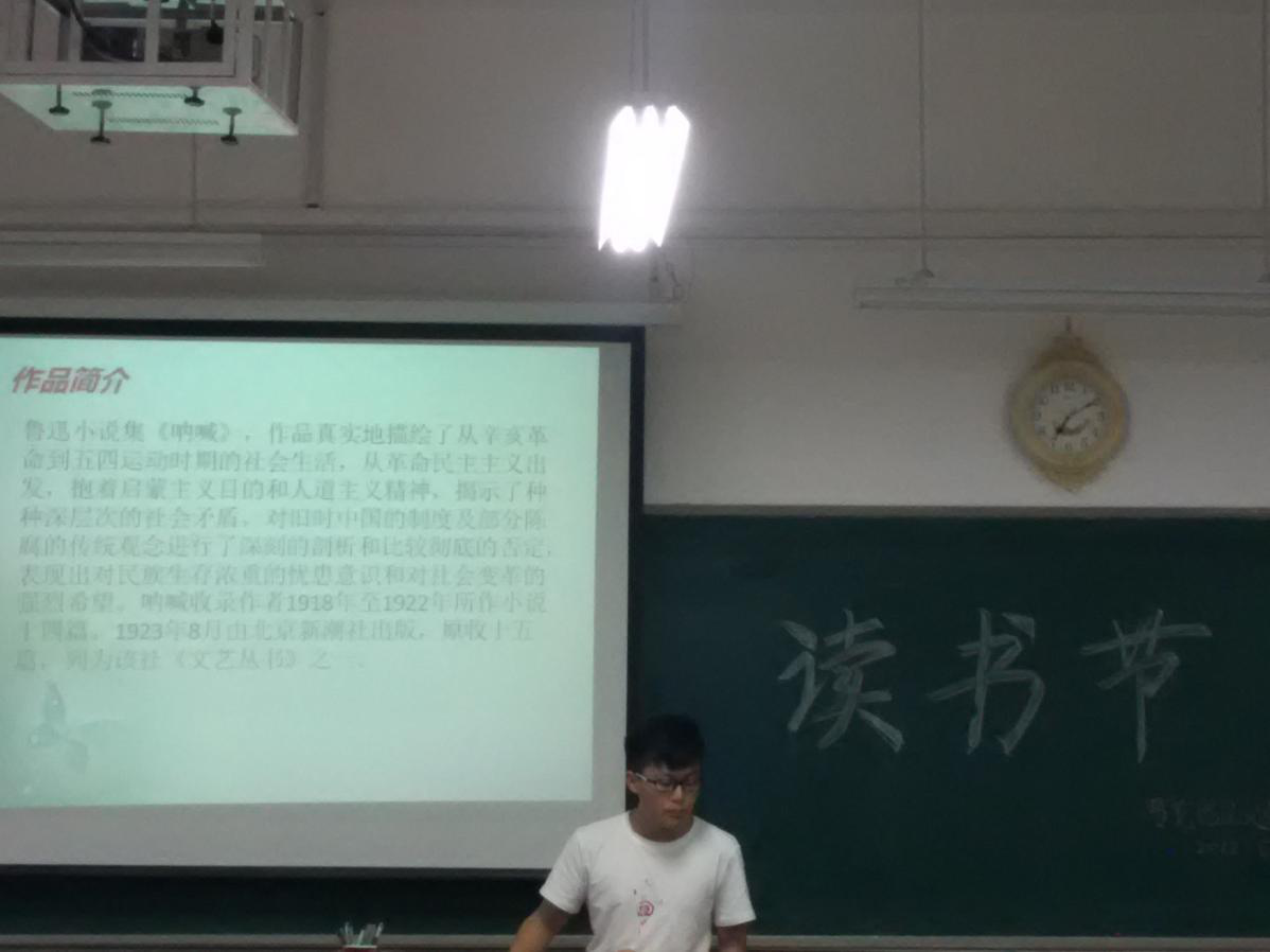 本次活动本着品经典赏美文的原则,以宿舍为单位共分八个小组来开展。有的同学阅读的书籍是鲁迅的《呐喊》,这部作品主要讲述了从辛亥革命到五四运动时期的社会生活,从革命民主主义出发,抱着启蒙主义目的和人道主义精神,揭示了种种深层次的社会矛盾,同学们从中感受到了作者对民族生存浓重的忧患意识和对社会变革的强烈愿望;有的同学与大家分享的书籍是东野圭吾的《秘密》,这部作品追求的是感情上纤细的体验,在平凡朴素的生活中对社会、对人生进行了冷静的思考;有的同学推荐的书籍是英国女作家夏洛蒂·勃朗特创作的《简爱》,书中主人公简·爱坚强不屈的精神使人为之震撼……