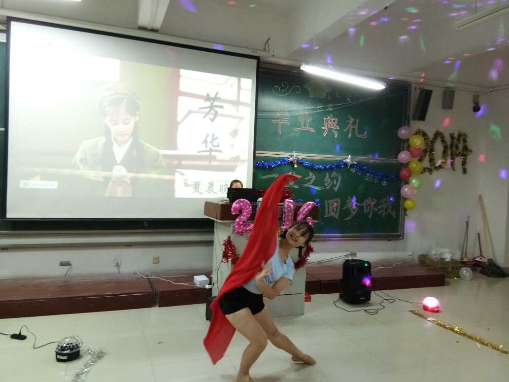 之后,毕业晚会正式开始。大屏幕上一段视频呈现在大家眼前,视频里记录着齐鲁师院的各处风景、老师们对毕业生的祝福和2018届毕业生在大学四年的点点滴滴。视频结束后,是由2017级同学带来的音乐剧《青春不说再见》,让同学们感受到不说再见的青春。随后的节目中不论歌曲、相声、小品还是舞蹈,都寄托了同学们对毕业的不舍,对齐鲁师院的留恋。