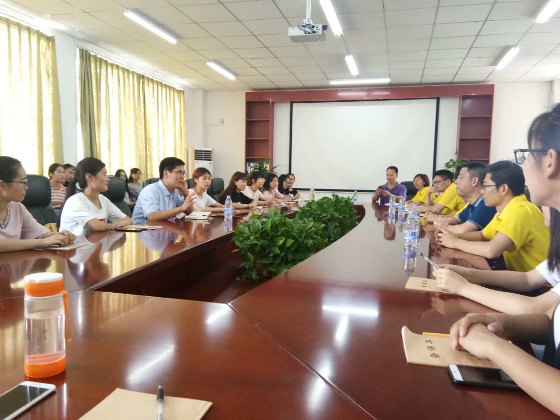 在双方简短的座谈交流中,章丘双语学校初中部贾联校长对我院师生的到来表示热烈的欢迎,并介绍了双语学校的办学情况,重点介绍了学校的教育理念,双语学校非常重视学生多发面的发展,开展了多种特长课程,使学生们在学习中找寻乐趣,使学生们从小培养起自信,为日后的发展奠定基础。马克思主义学院党总支副书记赵立峰就此次活动的总体安排做了说明,并代表学院对章丘双语学校提供的合作表示了感谢。