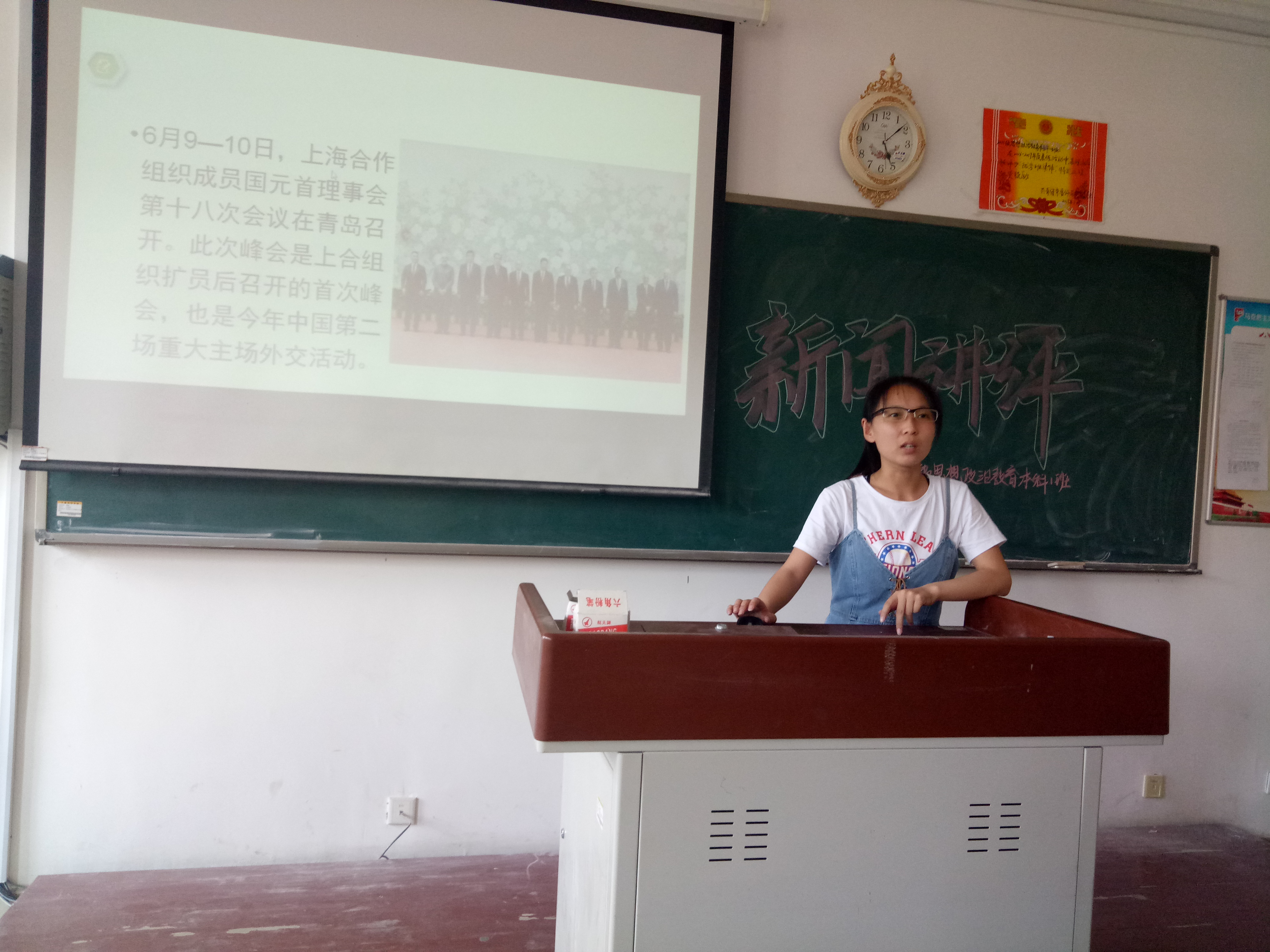 通过这次新闻讲评活动,同学们对热点新闻有了一个更全面地了解,特别是上海合作组织青岛峰会更是打开了同学们的视角,增强了同学们的民族自信心。
