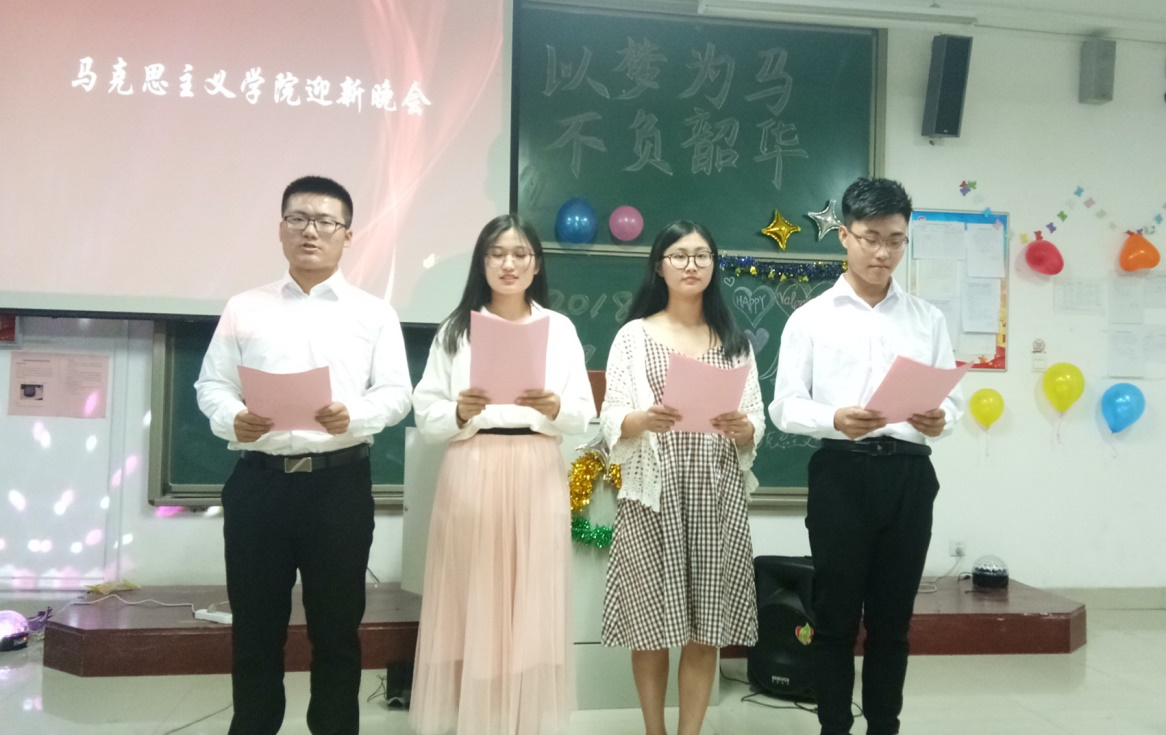 为使2018级新生尽快融入新生活,增进同学之间相互团结协作能力, 2018年10月10日,马克思主义学院在二号教学楼A310教室举行了以“以梦为马,不负韶华”为主题的2018级迎新晚会,参加本次晚会有马克思主义学院辅导员王雅文老师以及马克思主义学院2016级、2017级和2018级思想政治教育本科班全体同学。