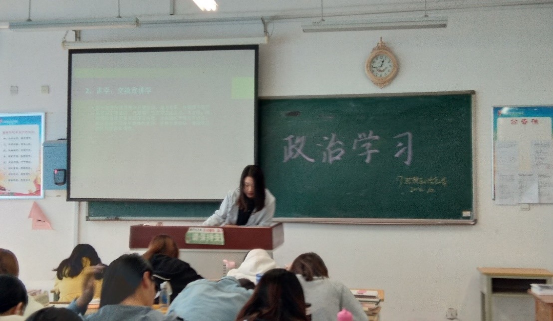 通过本次政治学习,同学们更加明确了身为大学生的责任、担当和时代要求。同时,深刻地认识到,随着中国特色社会主义进入新时代,青年学子不仅要通过学习来来提升自身理论水平、思维层次,更要切身地投入实践,增强创业本领和专业性技能,才能跟上时代的步伐,成长为能够担当民族复兴大任的一代青年。
