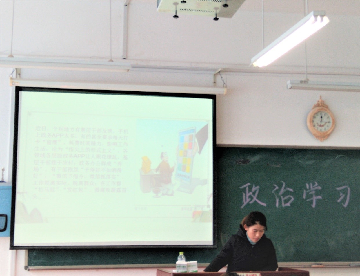 随着信息技术的不断发展,基层政务管理也逐渐与“互联网+”相结合,形成基层电子政务,衍生出大量手机政务APP。在电子政务带来种种便利的同时,随之也产生了许多问题。2018年12月18日,马克思主义学院2017级思想政治教育本科班全体在校生在2号教学楼A311教室进行了政治学习,学习基层电子政务建设相关问题。