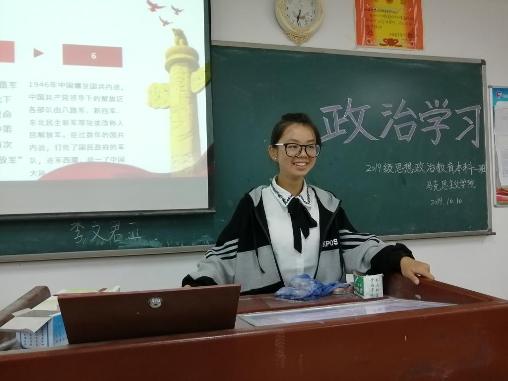 为加深青年学生对国庆阅兵意义的深刻认识,培育学生们的国防意识,增强民族自信心和自豪感,2019年10月10日,2018级、2019级思想政治教育专业全体同学分别在二教B311和A308举行了主题为“中国军队70年腾飞”的政治学习活动。
