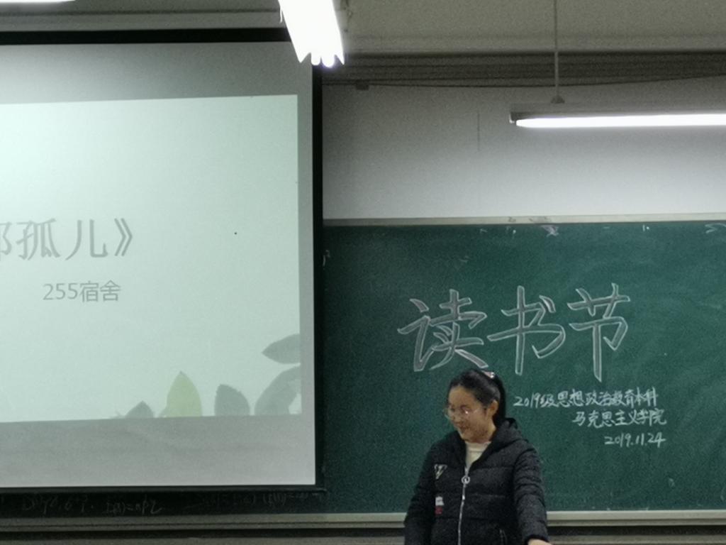 为丰富同学们的日常生活,使同学们养成多读书、读好书的习惯,培养同学们对文章的整体把握、概括大意能力,2019年11月24日,我院为2018、2019级思想政治教育专业全体同学举行了读书节活动。