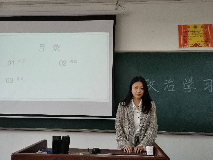 此次政治学习活动主要围绕着习近平总书记的讲话、人民力量、人民担当以及经验启示四个方面展开。习近平总书记在会议中提到:我们党的百年历史,就是一部践行党的初心使命的历史,就是一部党与人民心连心、同呼吸、共命运的历史。主讲同学通过举例的方式向我们展现了人民在历史各个阶段对社会发展作出的贡献,抗战胜利、三大改造的顺利完成、改革开放的有序进行,无不是党的领导与人民的支持共同铸就的成果。除此之外,她还指出,随着经济的发展、综合国力的提升,作为当代大学生的我们应该坚决拥护中国共产党的领导,提升自身的专业技能,努力为建设中国特色社会主义事业贡献一份力量。