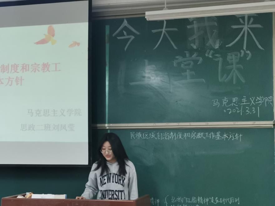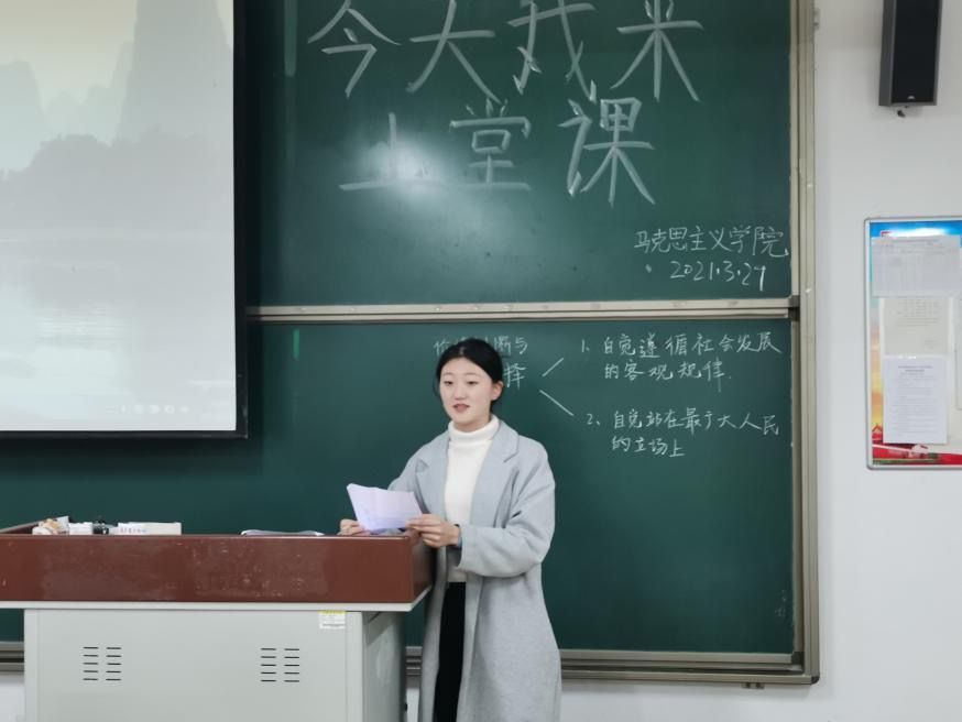 为提升我院2020级学生思想政治教育示范,锻炼学生的备课、语言表达、板书等教师必备技能,2021年3月29日至4月1日,我院于2号教学楼A310教室举办了《今天我来上堂“课”》活动。参加此次活动的有马克思主义学院2020级思想政治教育本科班全体同学和2019级部分学生。