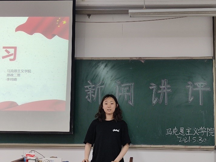 为提高同学们对新闻的关注度和理解新闻的能力,倡导同学们关注国内外时事,2021年5月30日,我院于2号教学楼A310教室举办了新闻讲评活动。参加此次活动的有马克思主义学院2020级思想政治教育本科班全体同学。