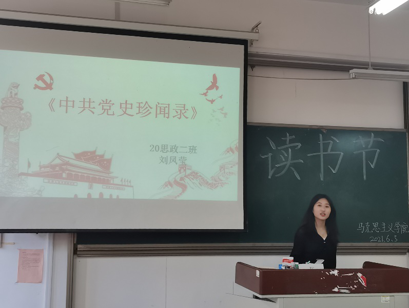 为提高同学们的阅读兴趣,引导同学们培养良好的阅读习惯,2021年6月5日,我院于2号教学楼A310教室举办了读书节活动。参加此次活动的有马克思主义学院2020级思想政治教育本科班全体同学。
