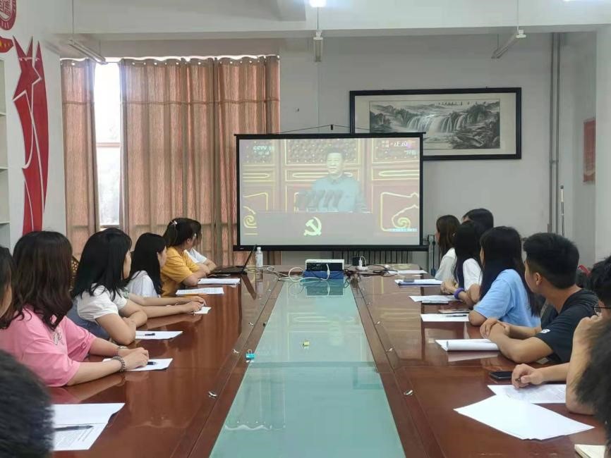 会议开始,与会同学们聚精会神地聆听了习近平总书记的重要讲话。视频中,习近平总书记总结了中国共产党带领全国各族人民不懈奋斗走过的百年光辉历史和做出的伟大历史贡献,他强调,过去一百年,中国共产党向人民、向历史交出了一份优异的答卷。现在,中国共产党团结带领中国人民又踏上了实现第二个百年奋斗目标新的赶考之路。