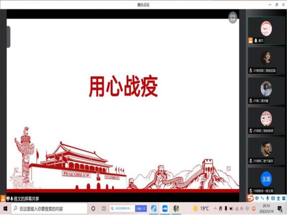 为进一步加强学生防疫教育工作,2022年5月14日,我院于线上举行用心战疫教育相关的主题会议。参加本次会议的有马克思主义学院党委副书记毛雯老师、团总支副书记王雅文老师以及马克思主义学院全体学生。