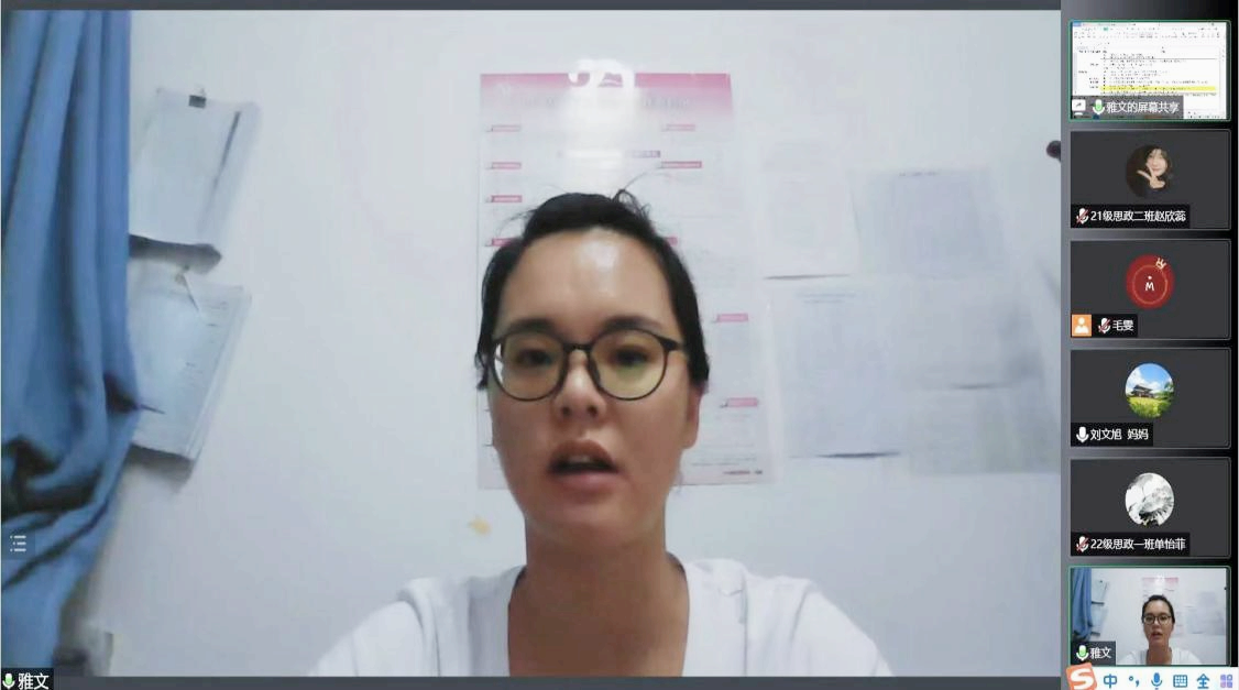 为贯彻落实学校疫情防控要求,确保2022级新生入学工作平稳有序开展,马克思主义学院于2022年9月7日通过线上的方式召开2022级新生主题班会。与会人员有马克思主义学院党委副书记毛雯、团总支副书记王雅文以及马克思主义学院2022级全体学生及家长。