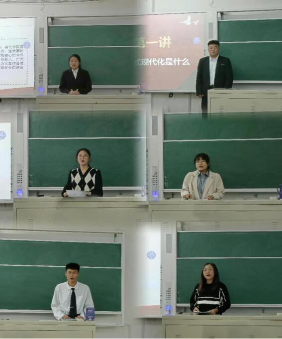宣讲团共分为四个小组。第一组主讲人李昀同学着眼于新时代青年的历史使命,并结合党的二十大精神,对新时代青年在中华民族伟大复兴的历程中应如何作为做出全面诠释;第二组主讲人于振江同学与赵月宁同学围绕“中国式现代化”这一主题,结合生活中的具体实例生动阐释其内涵及意义;第三组主讲人朱高慧同学与陈嘉临同学聚焦于新时代青年实现马克思主义中国化现代化的方式方法,勉励同学们形成同心共圆中国梦的青春合力,把青年理想和青春抱负熔铸在脚踏实地的奋斗中;第四组主讲人徐华慧同学立足于马克思主义思想作为党的指导思想的科学内涵和重要意义,向同学们展现其真理光辉。在四组主讲人结束讲解后,刘振光教授从课件制作、授课互动等方面给予了指正与建议,表达了对同学们的殷切期望。