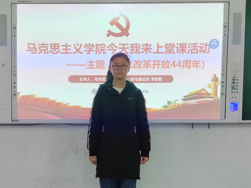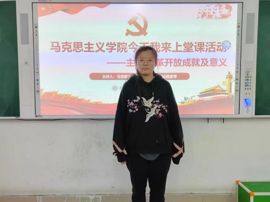 本周“今天我来上堂课”活动主题主要围绕我国改革开放与现代化建设时期及中国特色社会主义新时代的历程展开,薛彦萍、王新月、刘理庭等十二位同学为本周活动主讲人。