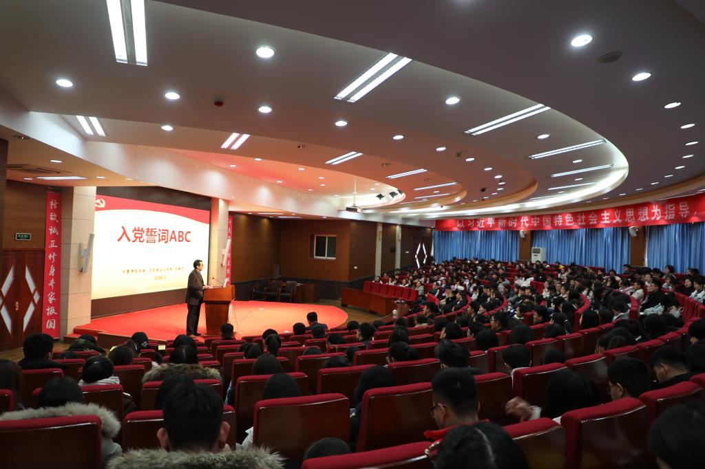 12月20日下午,在章丘校区图书馆学术报告厅,学校举行2018年预备党员集体宣誓仪式并开展党性教育讲座。集体宣誓仪式由副校长张福建主持,2018年新入党的预备党员、学生正式党员、入党积极分子代表共300余人参加。党委书记王玉华出席并发表讲话。