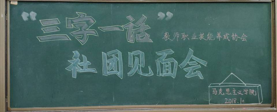 2018年10月17号,“三字一话”教师职业技能养成协会在二号教学楼A310举行新生见面会。“三字一话”教师职业技能养成协会社长卢洪瀑和全体18级新成员参加。
