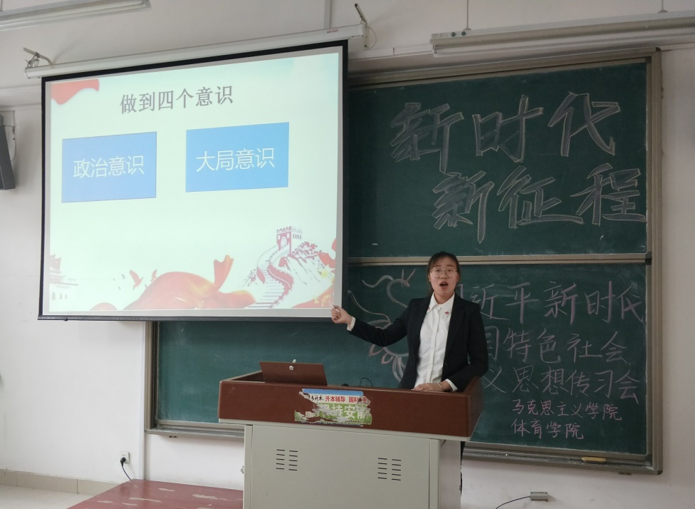 为进一步宣传十九大精神,使更多的青年大学生了解十九大精神,2017年11月30日,马克思主义学院,体育学院以及习近平新时代中国特色社会主义思想传习会在2号教学楼A317教室联合主办了以“新时代新征程”为主题的十九大宣讲活动。参与本次活动的有马克思主义学院习近平新时代中国特色社会主义思想传习会成员以及体育学院学生。