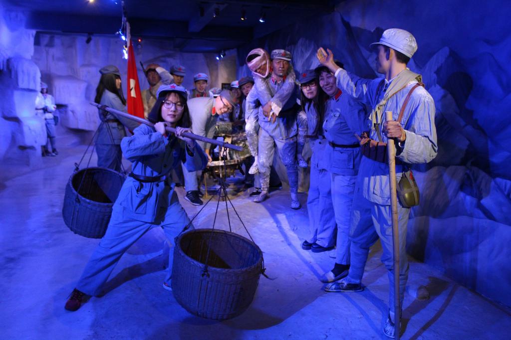 在星火燎原红色体验馆,我们身着红军服装,重走了一遍红军爬雪上过草地的“长征路”,犹如身临其境地体验了二万五千里长征的艰难险阻,同时也学得了红军战士“一不怕苦,二部怕死”的革命精神。当年渡江数次,次次危险重重,突破敌军沿大江大河设置的一道又一道封锁线,血染江河。爬雪山时,红军不仅要战胜雪山阻挡和恶劣气候的侵袭,更加严重的是缺粮断炊的威胁。过草地时,遍地是水草沼泽泥潭,陷入沼泽更是苦不堪言甚至面临全军覆没的危险。通过实景体验,深刻的体验了长征的极其艰苦的过程。红军将士在长征途中表现出了对革命理想和事业无比的忠诚、坚定的信念,不怕牺牲、前赴后续的精神以及无产阶级乐观主义精神一次次的激励着我们。中国共产党在历练中涅火重生,才能保全自身,建立丰功伟业。在我们“重走长征路”的途中,偶遇央视纪录片《记住乡愁·古田》的拍摄组,对我们的活动进行了航空特拍,此内容央视将在明年3月份播出。给我们此次活动添上了浓墨重彩的一笔。