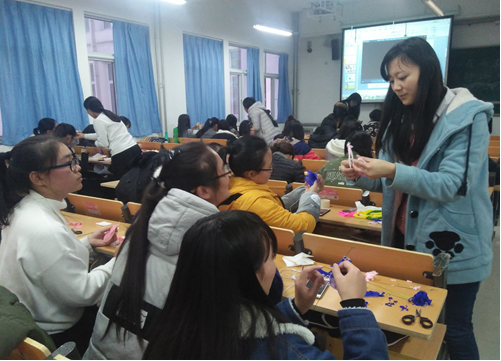 2016年11月20日下午,惠心手工坊在2教A215和A217教室举办了以“丝网花开在师院,文脉湖畔待君来”为主题的手工制作丝网花活动。此次活动以教授社员制作丝网花为主要目的。惠心手工坊社长李琳玉、通讯部部长赵红艳、秘书处部长谭欣、手工部部长郑芳婷和副部长刘平以及全体社员参加了本次活动。