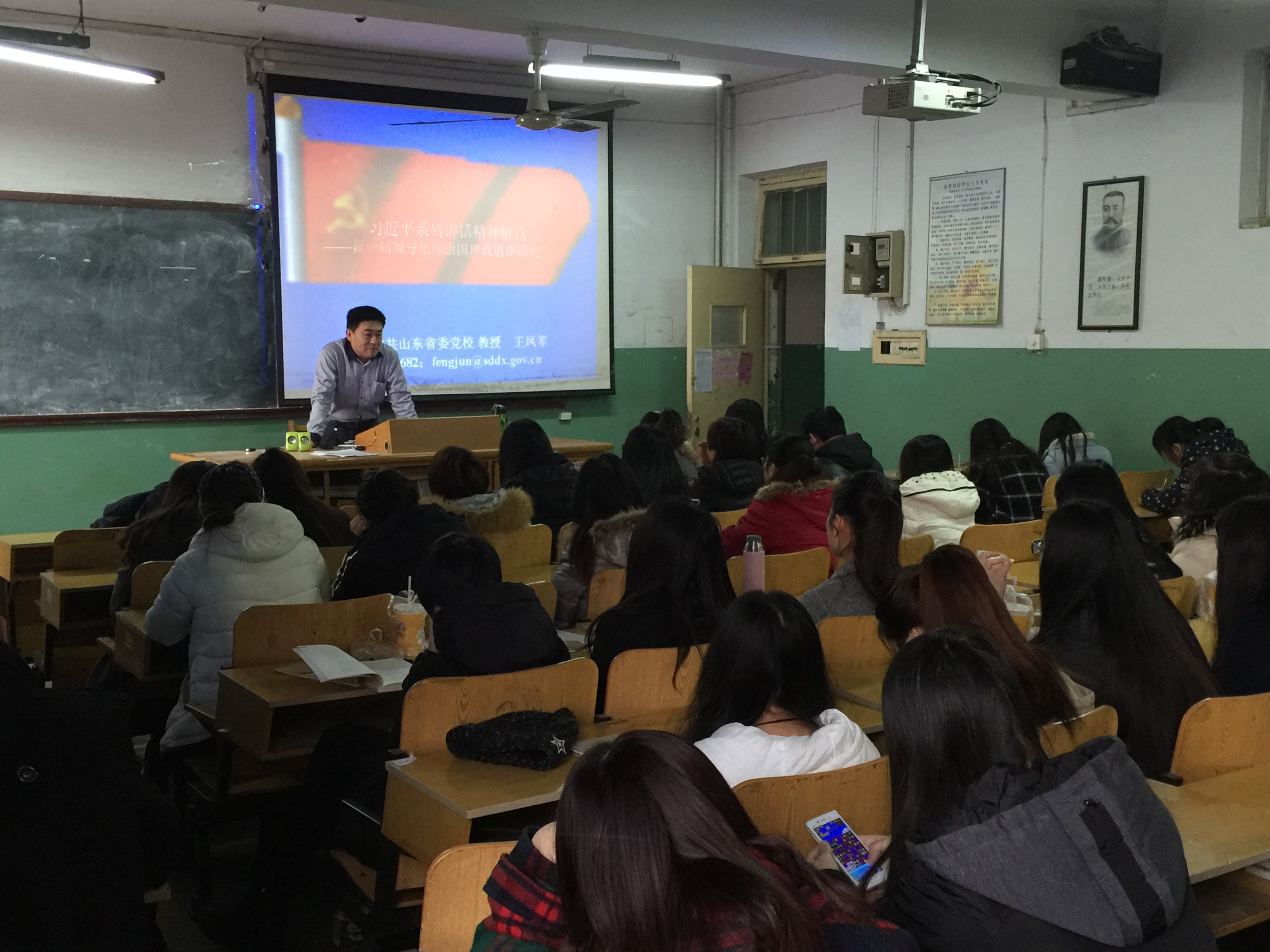 12月21日,我校邀请山东省委党校王凤军教授,在历下校区为我校学生作学习习近平总书记系列重要讲话辅导报告,思想政治理论课部分教师和美术学院学生聆听了此次讲座。