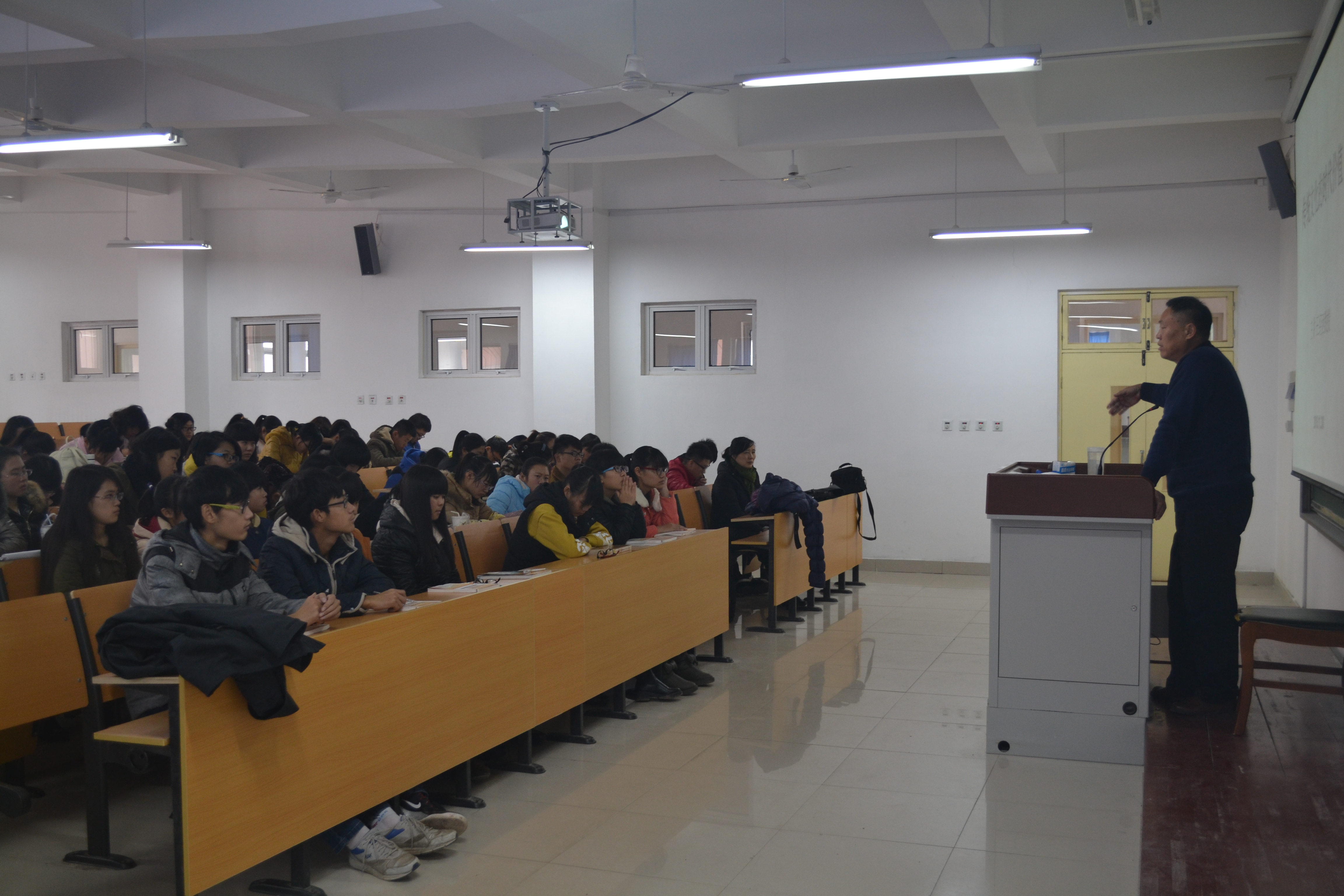近日,多位 “特聘教授”陆续走上我校“思政课”课堂,为我校思政课带来一股清新之风。11月30日,我校思想政治理论课特聘教授王经西教授为2015级数学本科1、2班,物理学本科班学生进行了题为《传统文化的时代价值》的专题讲授。政治与社会发展学院(马克思主义学院)院长张洪芹教授、副院长李红艳教授及部分思政课教师和学生们共同聆听了这次专题讲座,张洪芹院长主持。