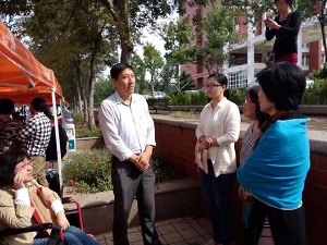 在12日上午迎新工作紧张进行时,我校领导在尹芳书记的带领下到我院迎新摊位前视察,向辛苦工作的学生们表达了关怀之情,使同学们的工作热情倍受鼓舞。