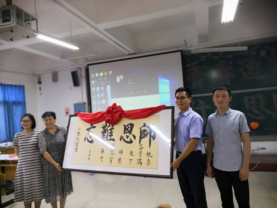 晚会开始之前,为表达对老师的感谢之情,2015级思想政治教育本科班举行感谢师恩主题班会。2015级全体学生为马克思主义学院全体老师送上了精心制作的视频《老师好》和一幅写有“师恩难忘”的牌匾,以感谢老师们四年来不辞辛苦、任劳任怨、细致耐心的教育和无微不至的关怀。在赠书环节,17、18级学生代表从15级优秀学姐、学长们手中接过考研宝典,学弟学妹们就是马克思主义学院考研的新力量。