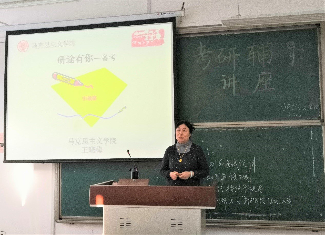 在实习结束、即将步入寒假之际,为了帮助2017级的同学们总结实习经历,迈入考验旅程。2020年1月8日上午,马克思主义学院党总支书记王晓梅教授响应同学们的请求,在2号教学楼A315教室为同学们召开“研途有你—备考”的考研计划安排。本次活动由王晓梅教授主持,院田田老师和2017级全体在校生参加。