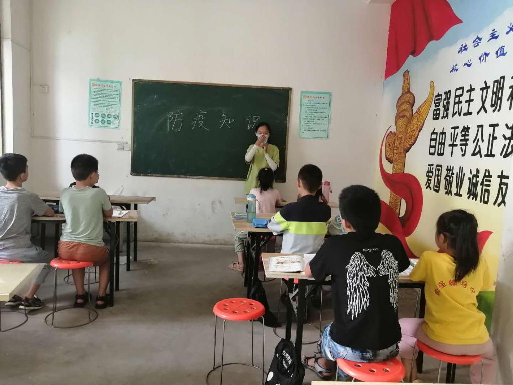 服务队队员在当地培训学校宣传防疫知识
