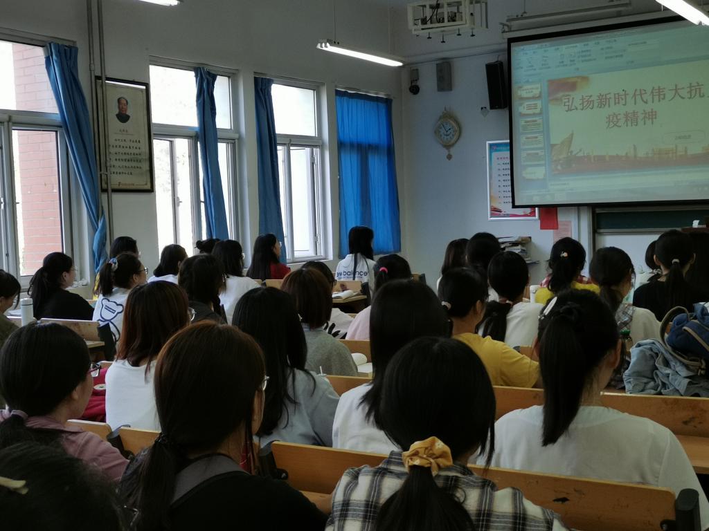 为更好的弘扬抗疫精神,了解抗疫故事,使同学们深刻感悟医护工作者的艰辛,明白疫情平稳生活的来之不易,9月17日下午,我院于二号教学楼A310教室举行了以“众志成城,抗击肺炎,弘扬抗疫精神”为主题的政治学习活动。参加此次活动的马克思主义学院2019级全体学生。