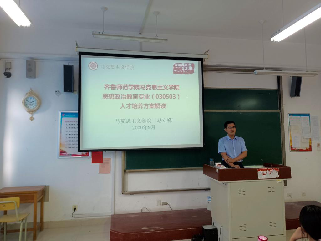 为使我院2020级新生正确认识思想政治教育专业,深入了解学校开展的课程以及培养方案,我院党总支副书记赵立峰教授于2020年9月22日在二号教学楼A310教室为2020级新生开展了《思想政治教育专业人才培养方案解读》的主题课程。2020级思想政治教育本科班全体新生参与了本次活动。