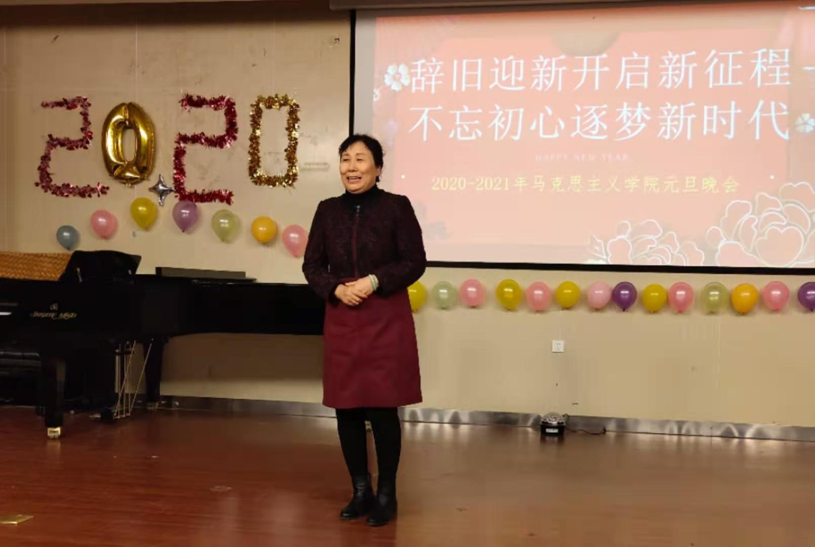 为迎接新的一年的到来,坚定学生在新时代建功立业的理想信念,2020年12月24日,我院在齐鲁师范学院音乐厅举行以“辞旧迎新开启新征程,不忘初心逐梦新时代”为主题的元旦晚会。参加本次晚会的有马克思主义学院党总支书记王晓梅老师,院长刘振光老师,办公室主任刘金玲老师,20级思政一班班主任李敏老师,20级思政二班班主任孟英莲老师,团总支陈赟老师、孙燕丽老师、娄衍群老师,青年教师代表刘英老师、彭珍珍老师,马克思主义学院12级学长现任历史与社会发展学院辅导员孙良运老师,马克思主义学院13级学长现任教师教育学院辅导员邹凤移老师以及2020级全体学生。
