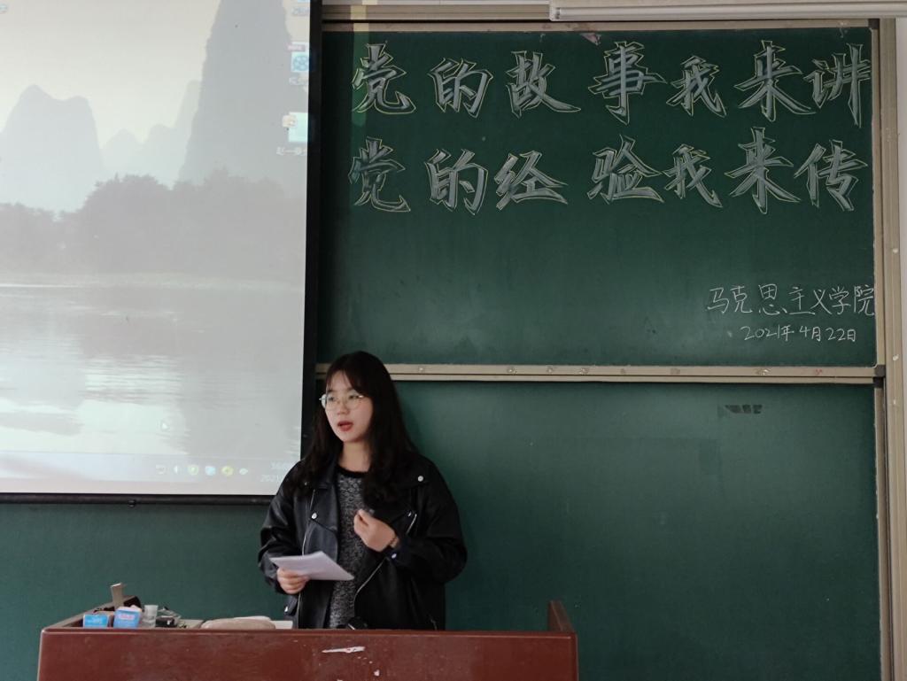 为深入贯彻落实习近平总书记在党史学习教育动员大会上的重要讲话精神,高质量高标准地推进党史学习教育深入开展,为马克思主义学院党史宣讲团选拔出“能讲、敢讲、会讲”的优秀学生作为宣讲团的后备人员,我院于2021年4月22日在二教A310教室举行了以“传承红色基因,赓续精神血脉——党的故事我来讲,党的经验我来传”为主题的党史宣讲团选拔活动。参与本次活动的有团总支陈赟老师、刘英老师以及2017级、2019级、2020级部分学生。