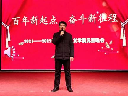 为回首2021年的佳绩,迎接新一年的到来,帮助我院学生在实现中华民族伟大复兴的进程中树立正确理想信念,2021年12月30日,我院于齐鲁师范学院图书馆报告厅举行了以“百年新起点,开启新征程”为主题的元旦晚会。参加本次晚会的有马克思主义学院党总支书记贾龙老师,院长赵立峰老师,马克思主义学院刘振光教授,办公室主任刘金玲老师,2021级思想政治教育本科一班班主任张纪昌老师,团总支副书记王雅文老师,青年教师代表孙燕丽老师、娄衍群老师、刘英老师、彭珍珍老师、孙良运老师以及马克思主义学院2018级、2020级、2021级思想政治教育本科班全体学生。