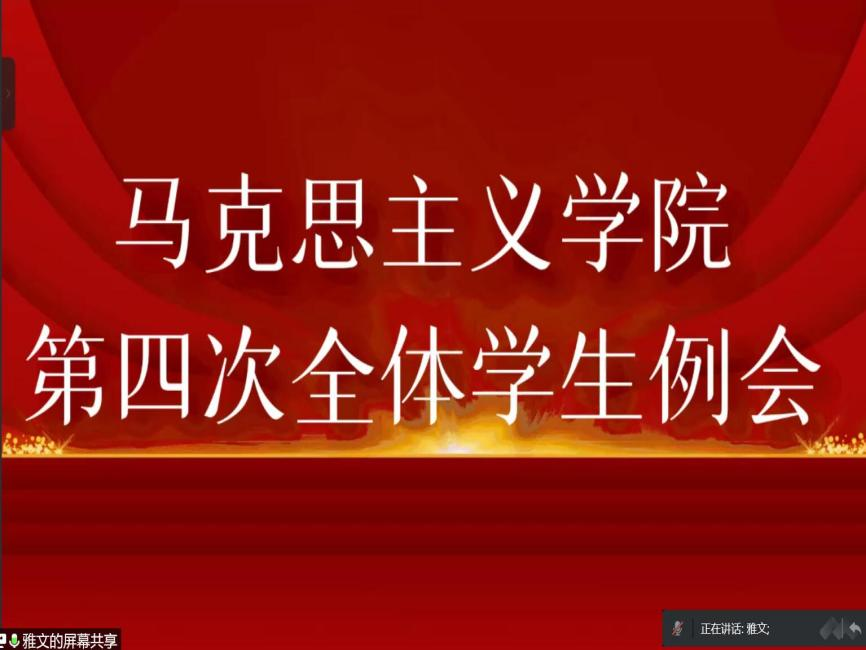 为进一步做好疫情防控工作,压实疫情防控责任,巩固疫情防控成果,稳定全体学生心态,增强全体学生疫情防控信心,2022年4月28日,我院线上召开第四次全体学生例会。参加本次会议的有马克思主义学院党总支副书记毛雯老师、团总支副书记王雅文老师以及马克思主义学院全体学生。