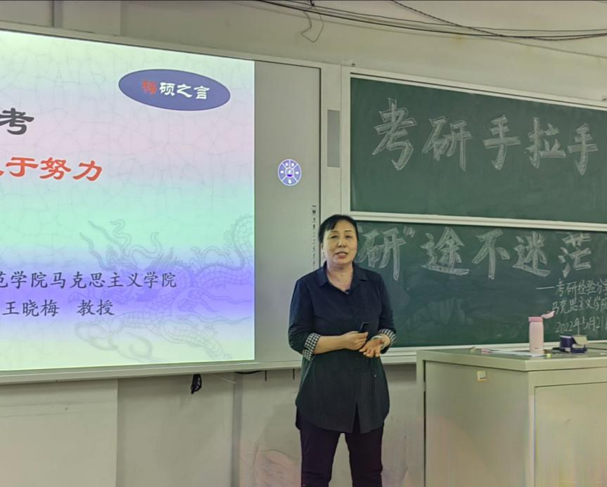 新一年考研备战在即,为进一步加强学院学风建设,充分帮助同学们明确目标,端正心态,制定计划,依托“研”途有你系列活动,马克思主义学院先后于2022年5月20日、21日在1号教学楼A207教室举行了考研政策解读会。马克思主义学院教授王晓梅、团总支副书记王雅文以及2019、2020级全体学生参与了此次活动。