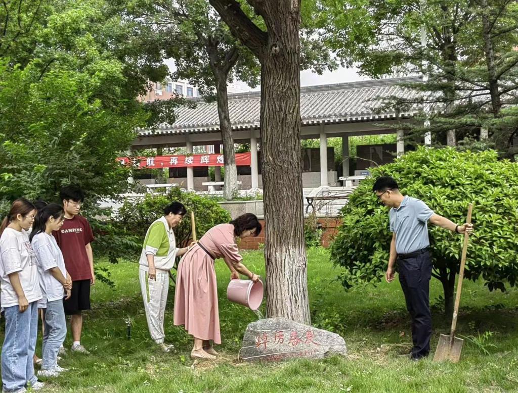 师恩难忘意深浓,桃李人间茂万丛。为表达对学校深深的眷恋和美好祝愿,感恩母校,报答师恩,6月16日马克思主义学院2022届全体毕业生在1号教学楼东门举行“认一棵大树感恩母校,赠一块青石回报师恩”教育活动。学生工作部(处)部长孙磊,马克思主义学院院长赵立峰、党委副书记毛雯、王晓梅教授、团总支副书记王雅文参加活动。