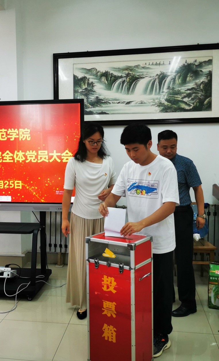 在推选学校第三次党代会代表会议前,马克思主义学院全体党员对《中国共产党章程》《中国共产党基层组织选举工作条例》《中国共产党普通高等学校基层组织工作条例》《关于选举中国共产党齐鲁师范学院第三次代表大会代表的通知》进行了学习,明确了代表选举方式、选举办法。大会严格按照工作程序和要求,在充分发扬民主、广泛酝酿讨论的基础上,经无记名投票、采用差额选举的办法,选举产生了贾龙、赵立峰、李伟、张彤蕾四名同志为马克思主义学院党委出席中国共产党齐鲁师范学院第三次代表大会代表。