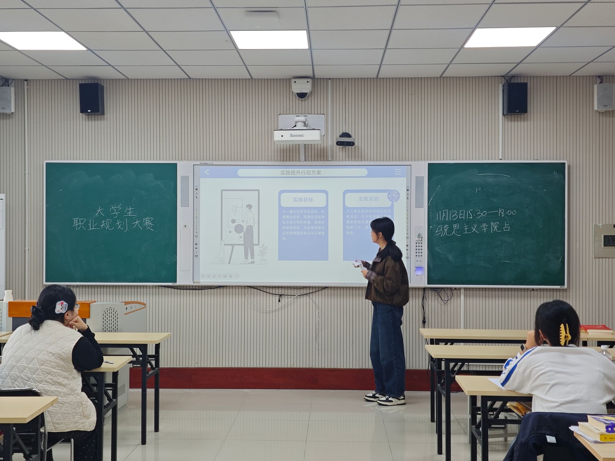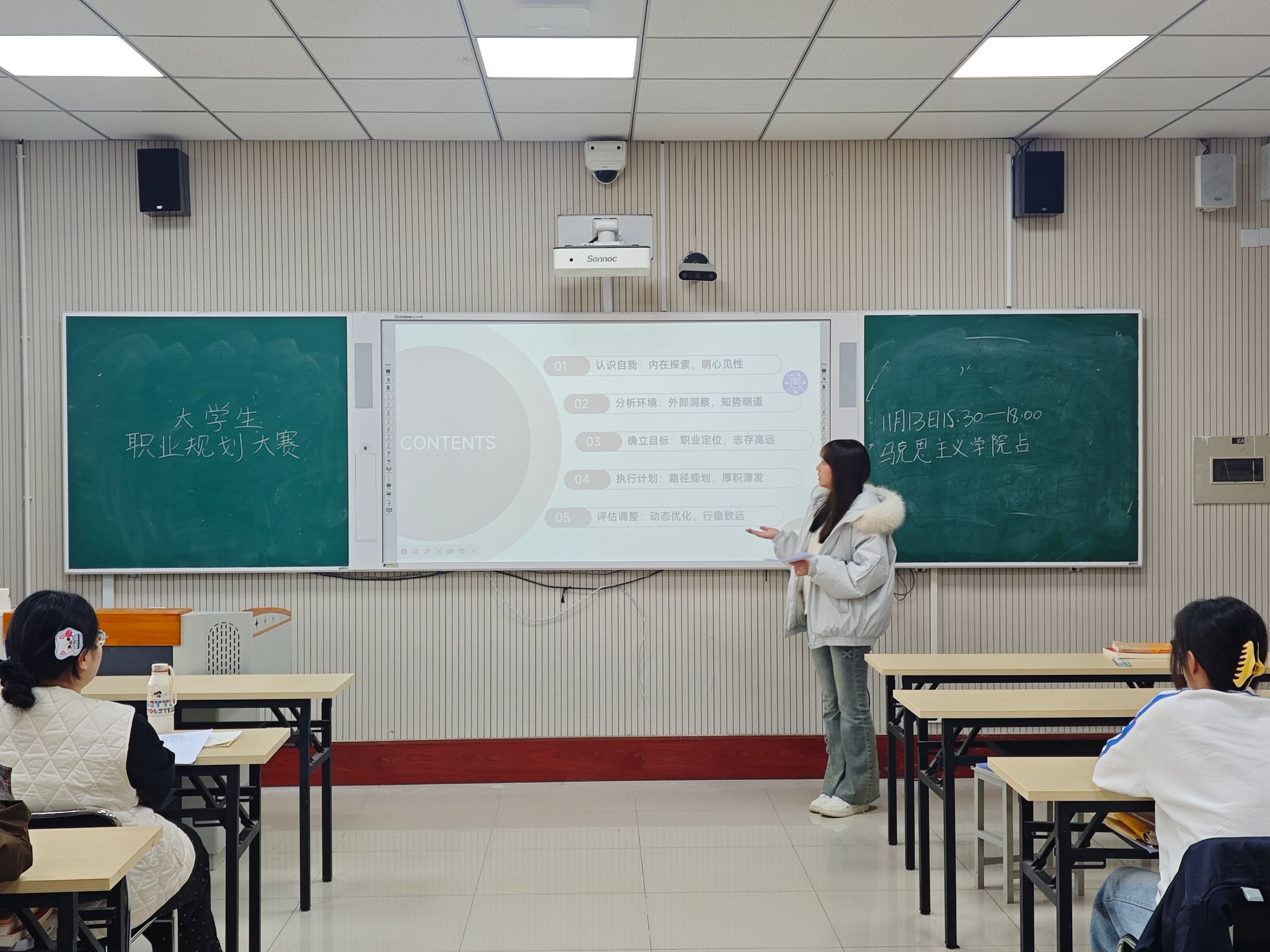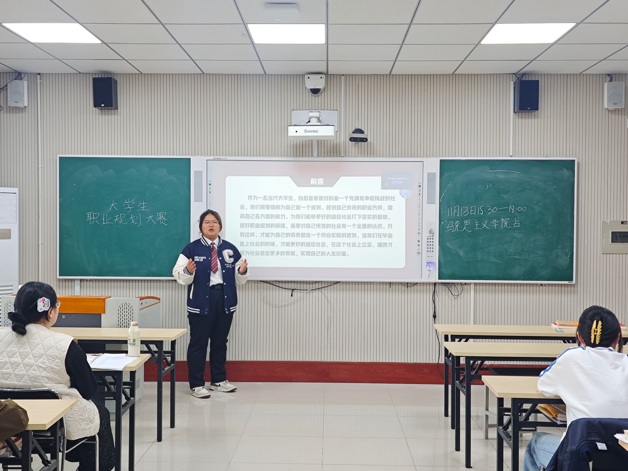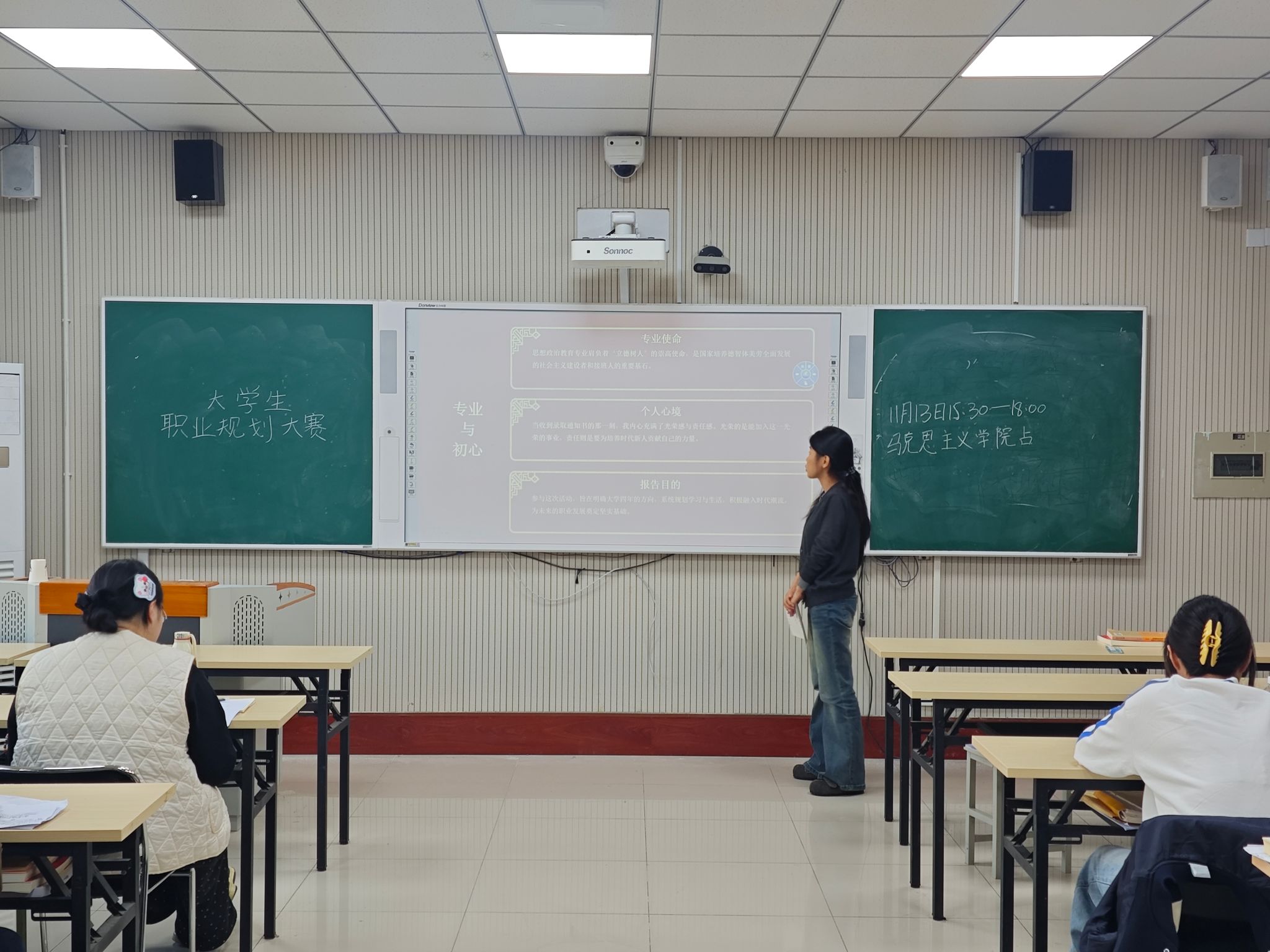 为深入贯彻落实立德树人根本任务,引导青年学子将个人理想融入国家发展大局,科学规划职业生涯路径,2025年11月13日,马克思主义学院在2号教学楼A312教室隆重举行“规划青春赛道,奔赴时代未来”职业生涯规划院赛。马克思主义学院2023级、2024级和2025级部分学生参与此次赛事,在职业理想与时代使命之间展开对话。