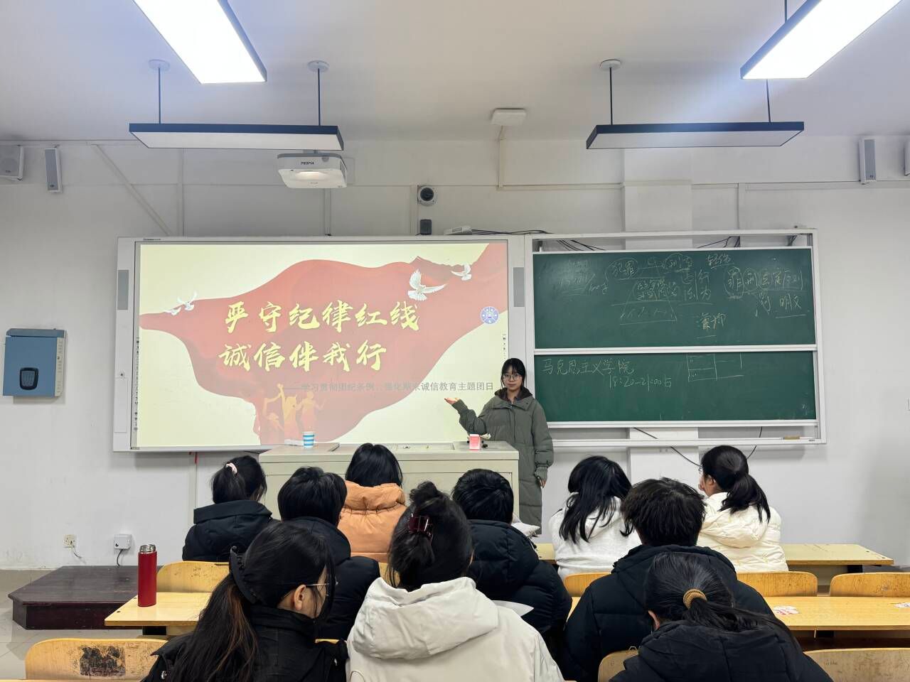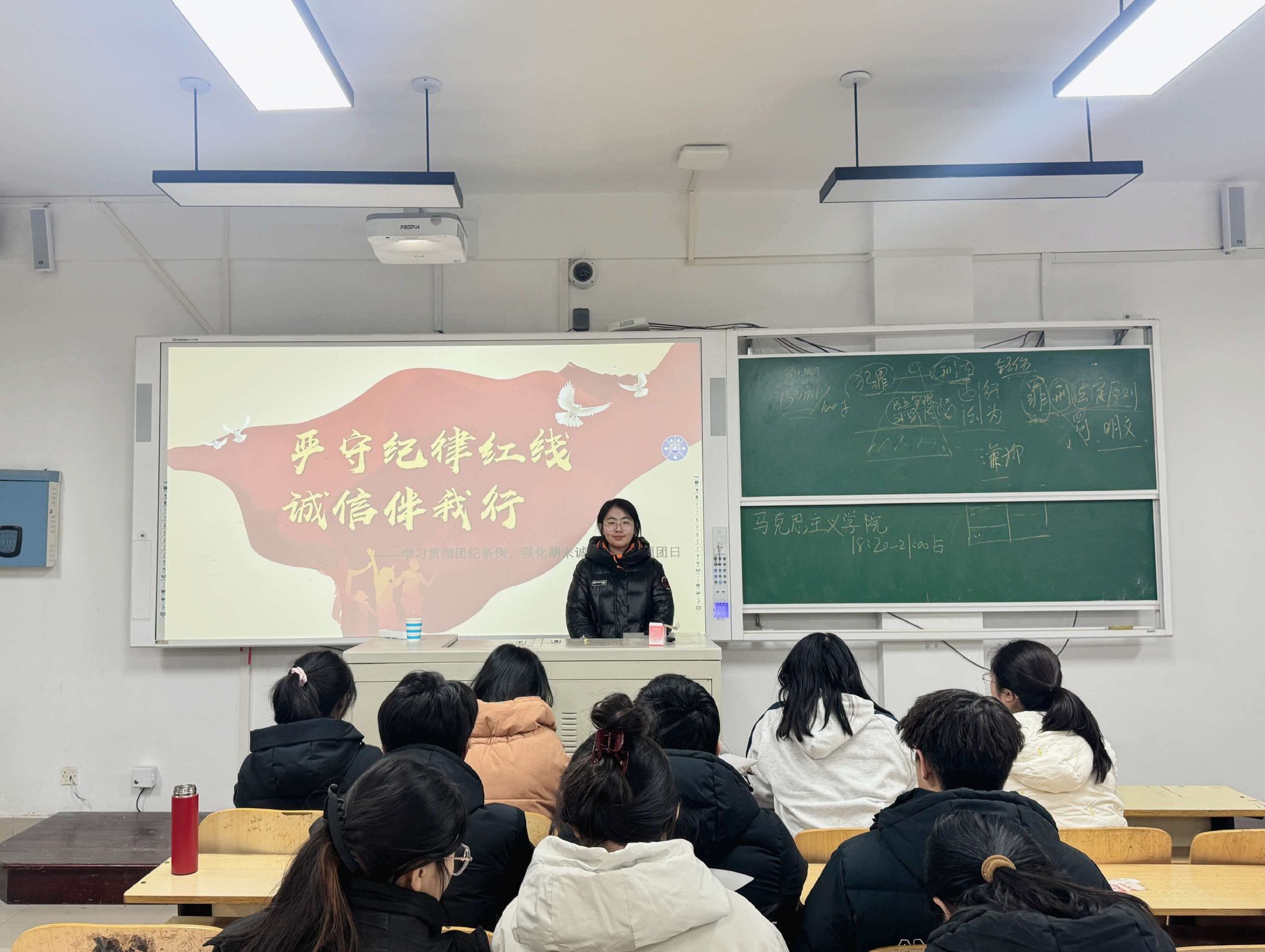 为深入贯彻落实新时代全面从严治团要求,进一步强化学生的诚信意识与规则意识,营造风清气正的考试环境与勤学笃行的学风氛围,2026年1月8日,马克思主义学院于二号教学楼A310、A202教室举行“严明考纪·强化团性”主题团日活动。2022级、2024级和2025级全体考生参加本次活动,由各班团支书主持。