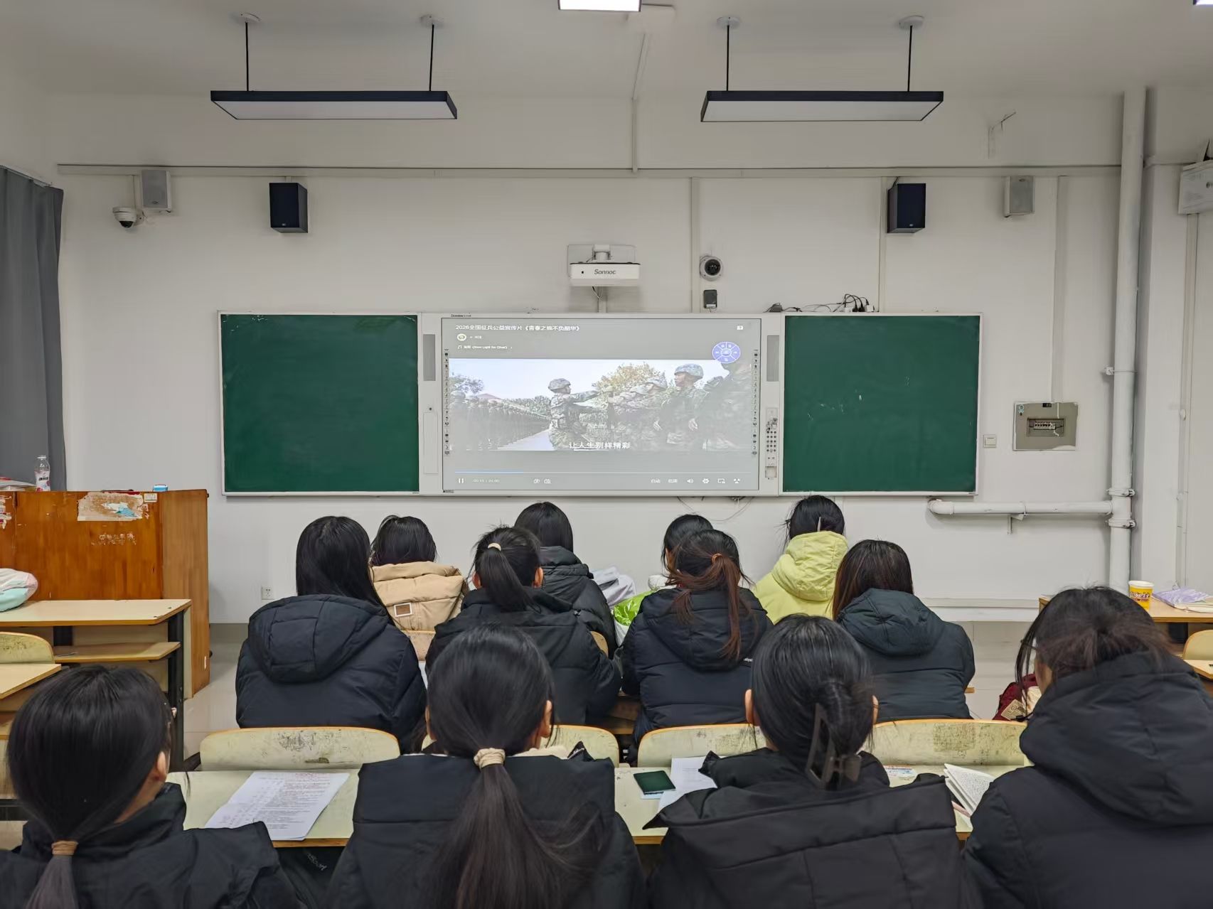 2026年1月20日,马克思主义学院组织2024级全体同学共同观看全国征兵公益宣传片《青春之我 不负韶华》。