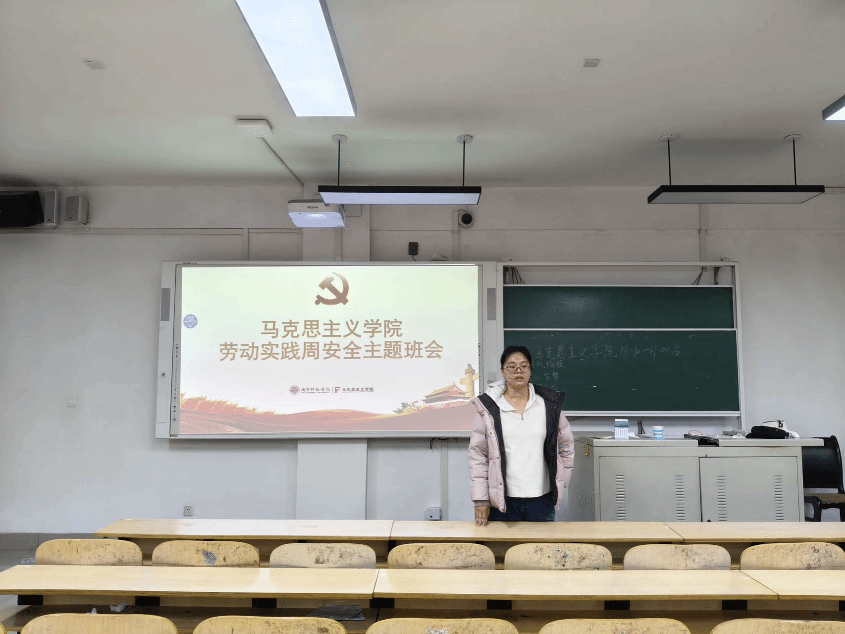 为全面贯彻党的教育方针,落实立德树人根本任务,筑牢劳动实践安全防线,保障劳动实践周活动有序开展,2026年4月6日,马克思主义学院在二教A207教室召开2025-2026学年第二学期劳动实践周安全主题班会,2025级全体学生和团总支书记王雅文参加会议。